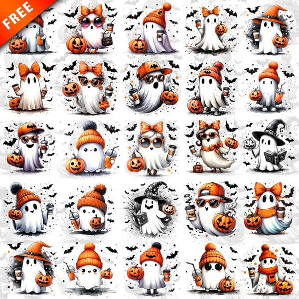 Free Helloween Ghost Bundle, 40+ High Quality PNGs